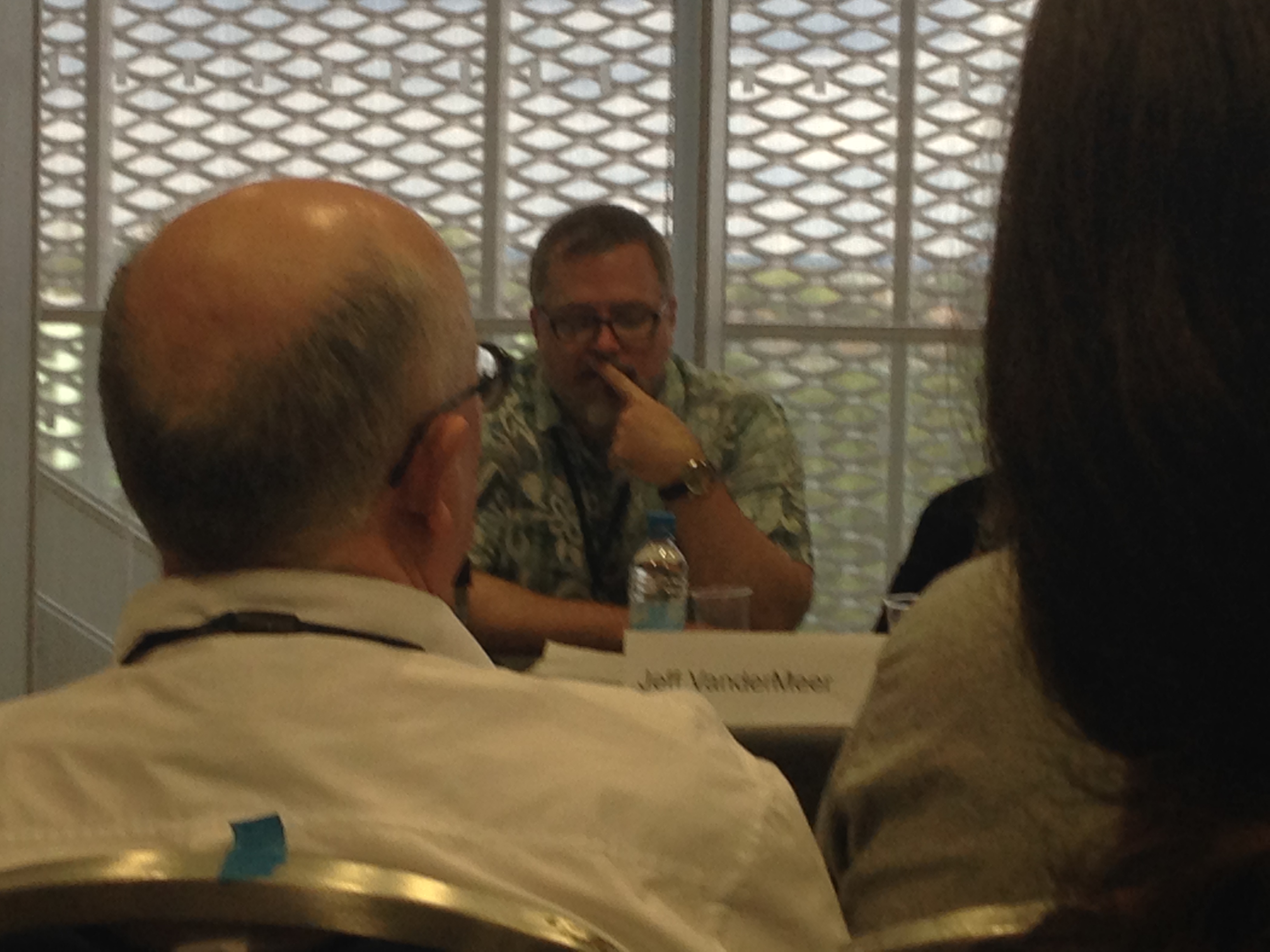 Uno de los momentos cumbre de la LonCon fue cuando pude conocer a Jeff Vandermeer, uno de los autores del new weird que más admiro (China, no te pongas celoso). Además de firmarme su Wonderbook, estuvimos hablando varios minutos sobre construcción de personajes en su novela Shriek: An Afterword, una obra estilísticamente compleja que resultó ser de las favoritas de Vandermeer.