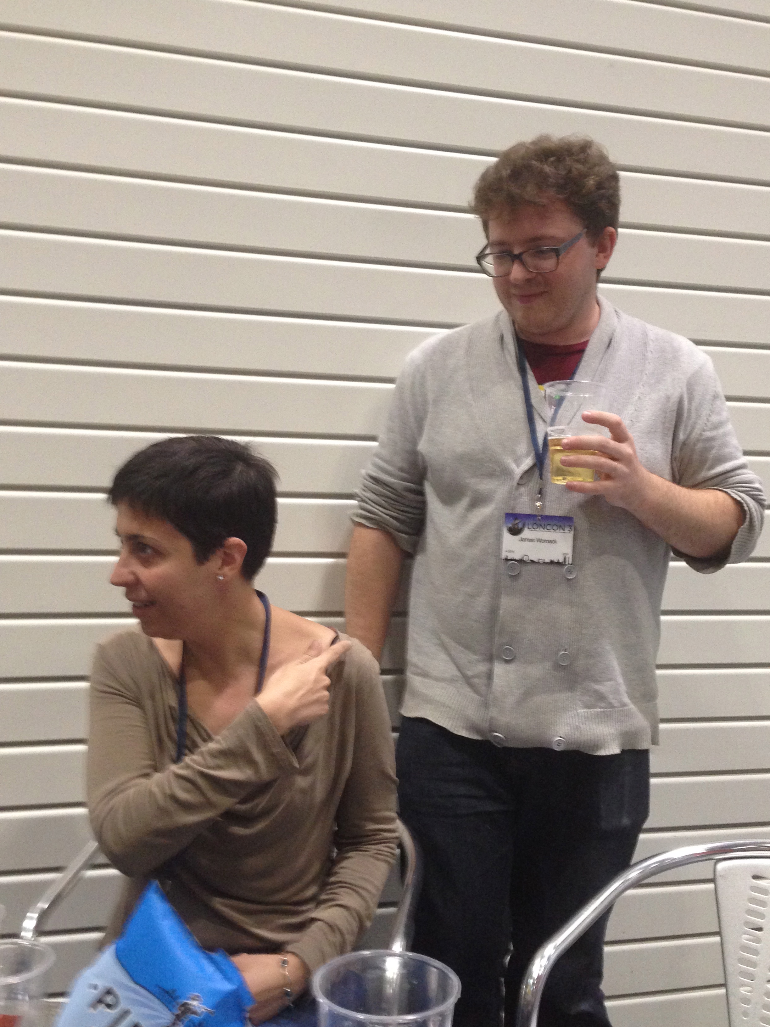 A media mañana pude tomar un café con Anne Charnock, autora británica cuya novela A calculated life fue nominada este año a los premios Campbell. Conocí a Anne tras leer y reseñar su historia, que me gustó bastante, tras lo cual le pedí una entrevista para el blog. Desde entonces, hemos intercambiado varios e-mails e incluso he publicado en su blog un artículo sobre la situación del mercado editorial de género en España.